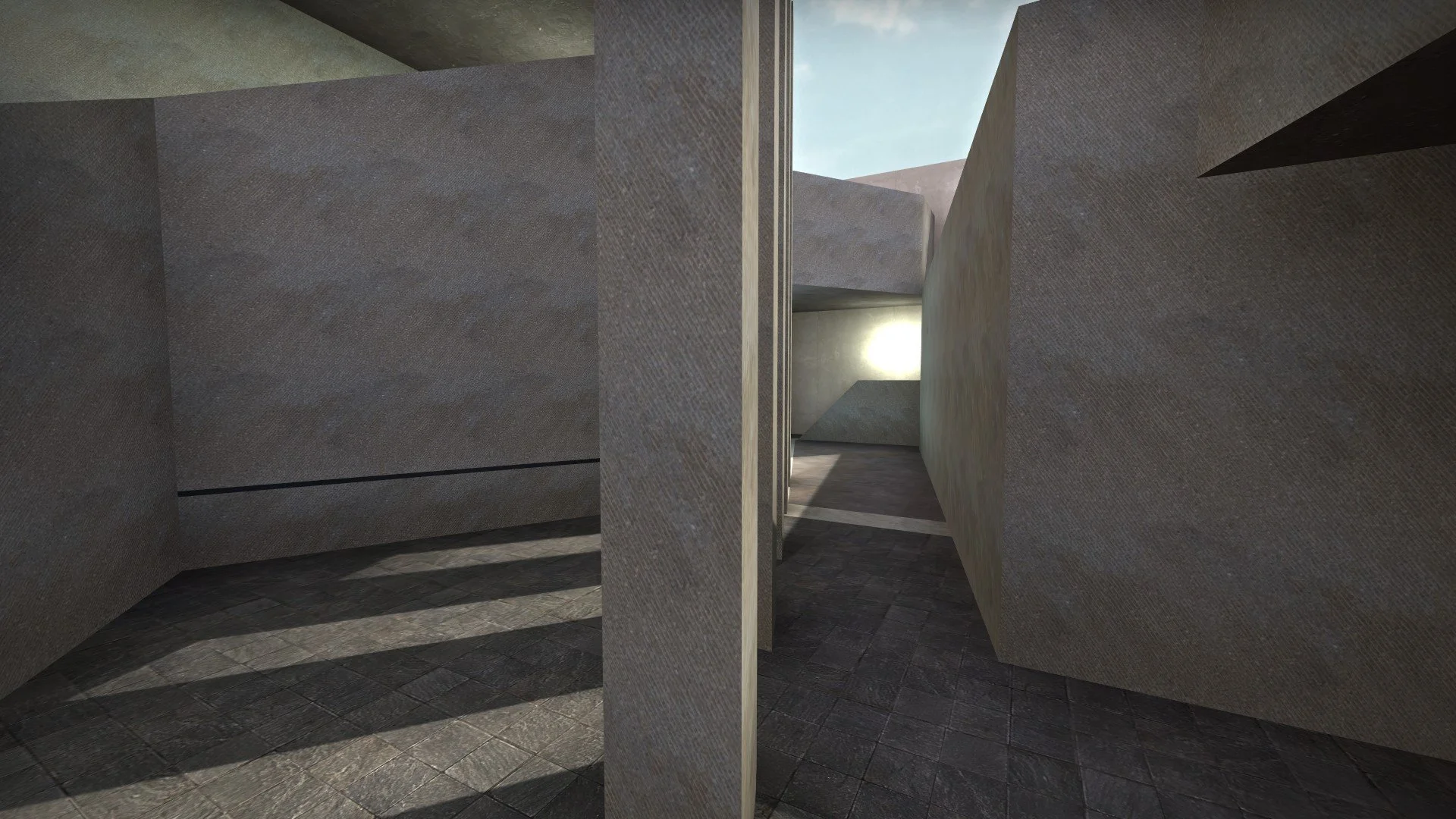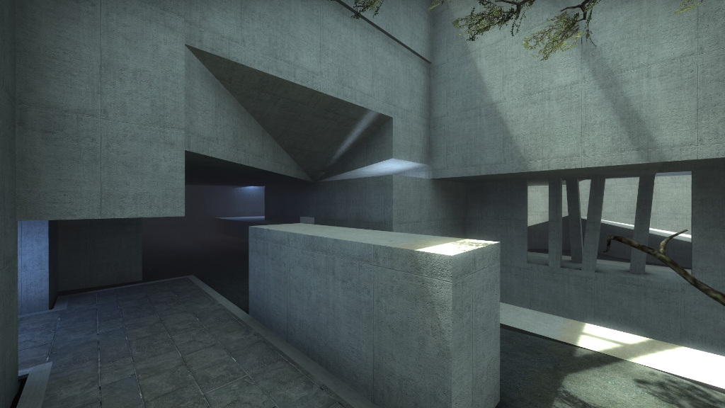 Things really started getting stripped down to pure lines of sight in this map. I think I used less than 5 materials on it. The cs:s version received heavy play for years on a server I ran.